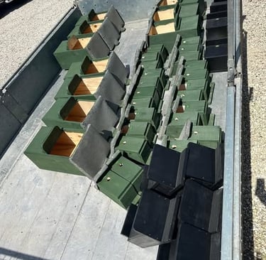Where possible and resources are available we prefer to reuse and re-purpose materials, these may be pallets, packing boxes, old scaffolding boards and off cuts from commercial manufacturers. We also support local volunteers and businesses with their environmental work by making bird nesting boxes.